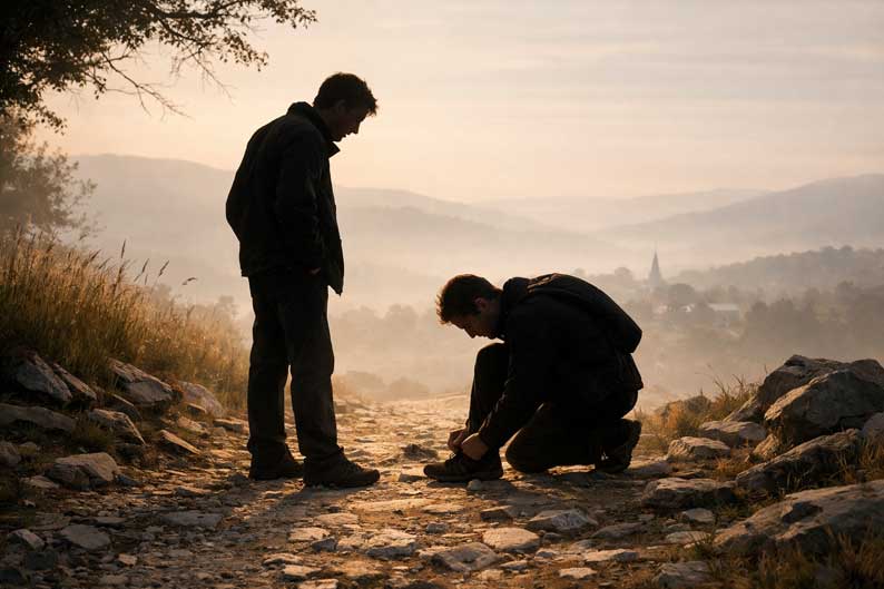 « Je serai le caillou dans ta chaussure » peut alors s’entendre comme une parole de fidélité, rude en apparence, fraternelle dans sa visée. Non pas te faire tomber, mais t’empêcher de marcher endormi. Non pas te blesser, mais te rendre à ta propre vigilance. Car l’initiation ne promet pas le confort du chemin, elle enseigne la conscience du pas.
