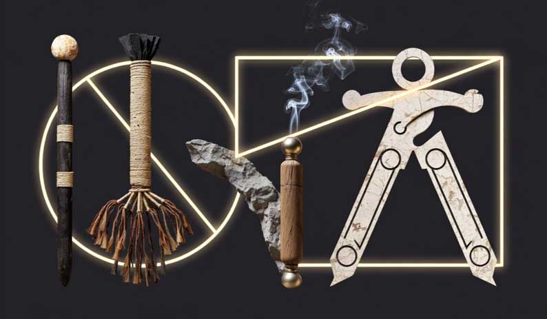 Les outils ne sont pas des souvenirs de métier exposés pour le folklore. Ils sont des symboles spirituels et philosophiques. Mieux encore, ils forment une pédagogie entière du travail intérieur.