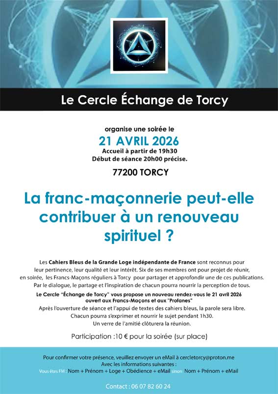 21/04/26 – Cercle Échange de Torcy : « A quoi sert encore aujourd’hui une société initiatique comme la Franc-maçonnerie ? »