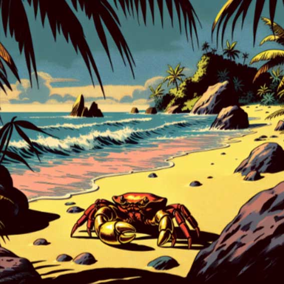 Le motif du crabe, emblème frappé et répété, mérite une attention particulière si nous voulons entendre la profondeur symbolique de l’album