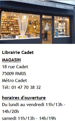 À commander ICI / DETRAD et ces deux vraies librairies : 18 ; rue Cadet Paris 9e et 3, rue Louis Puteaux Paris 17e
