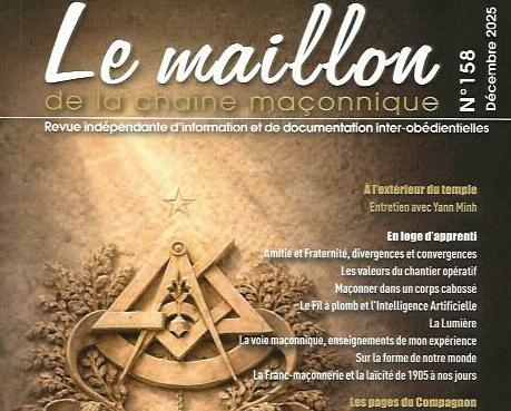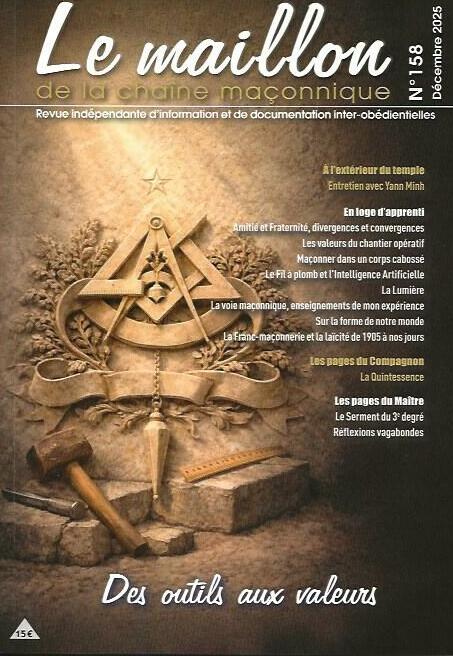 Dans son numéro 158, Le maillon de la chaîne maçonnique déplace la question des outils vers ce qu’ils révèlent de nous. Christine Ribes rappelle dès l’édito que la franc maçonnerie ne se contente pas d’énoncer des principes, elle les éprouve dans l’usage, jusque dans ce qui résiste, la pierre, le temps, les tempéraments, la fatigue, l’orgueil. Au cœur du sommaire, Didier Ozil frappe juste avec « Les valeurs du chantier opératif », un texte où l’entraide, la bienveillance, la rigueur et l’envie d’apprendre cessent d’être des mots confortables pour redevenir une tenue.