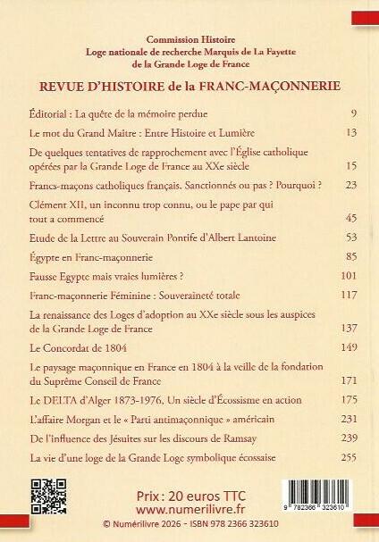 Commission Histoire – Loge nationale de recherche Marquis de La Fayette de la Grande Loge de France – Éditions Numérilivre, N°2, 2026, 264 pages, 20 €