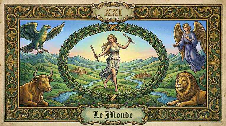 Nous sommes tous ce Bateleur qui a commencé avec ses petits outils sur une table de fortune, pour finir par devenir cette âme dansante au centre des étoiles. Le monde matériel restera toujours imparfait, et nos vies inachevées, mais l’initié qui contemple l’Arcane XXI sait que chaque effort vers la perfection le rapproche de la paix véritable.