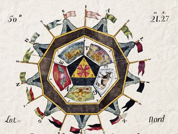 Conservée au musée de la franc-maçonnerie* à Paris, La bannière dite de Valenciennes ou de Douai, reproduite en couverture, donne immédiatement la mesure du voyage. Ce tableau de Loge en soie porte la latitude nord de 50 degrés, 21 minutes, 27 secondes, coordonnées qui correspondent à Douai et peuvent renforcer l’idée d’une expédition maritime. Dominique Jardin y voit l’une des plus belles iconographies maçonniques jamais produites pour ce grade. Les flammes extérieures tournent de gauche à droite, tandis que les drapeaux du cercle intérieur flottent en sens inverse. Dès l’image de couverture, tout est mouvement, circulation, tension, inversion, procession. Rien n’est décoratif. Tout signifie.