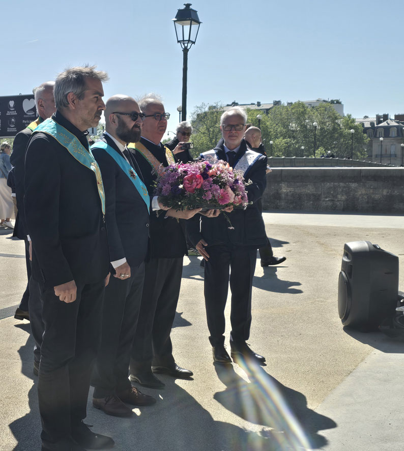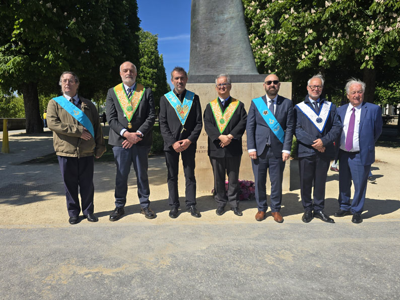 La présence de Guillaume Trichard, ancien Grand Maître du Grand Orient de France, soulignait la continuité d’un engagement maçonnique fidèle au travail de mémoire, à la vérité historique et à la défense de la dignité humaine. La parole institutionnelle fut portée par Bertrand Sade, Garde des Sceaux et du Timbre du Grand Orient de France. Son discours a donné à cette cérémonie de recueillement et de dépôt de gerbe une portée à la fois républicaine, maçonnique et universelle.