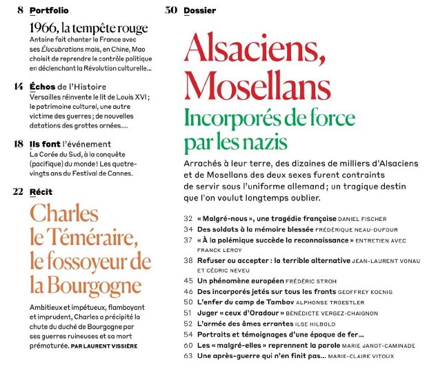Le grand dossier revient sur le destin tragique des Alsaciens et Mosellans incorporés de force par les nazis, arrachés à leur terre et longtemps prisonniers d’une mémoire douloureuse. Le portfolio consacré à 1966 éclaire la Révolution culturelle lancée par Mao, moment de fièvre idéologique où la jeunesse devient l’instrument d’une purification politique.