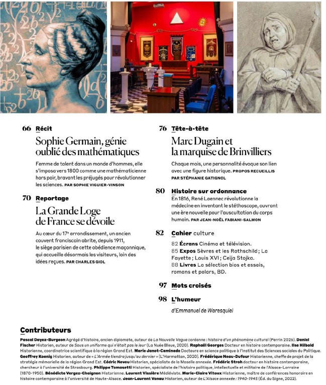 Autour du reportage consacré à la Grande Loge de France, le numéro 949 d’Historia déploie un sommaire très ample, traversé par les fractures de l’histoire et les puissances de la mémoire.