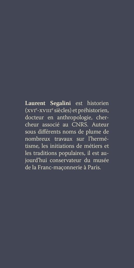 Laurent Segalini n’est pas seulement un historien des XVIe et XVIIIe siècles et un préhistorien, docteur en anthropologie, chercheur associé au CNRS. Il est aussi, de toute évidence, un lecteur des continuités cachées. Sa trajectoire le montre. Sous divers noms de plume, il a consacré de nombreux travaux à l’hermétisme, aux initiations de métiers et aux traditions populaires.