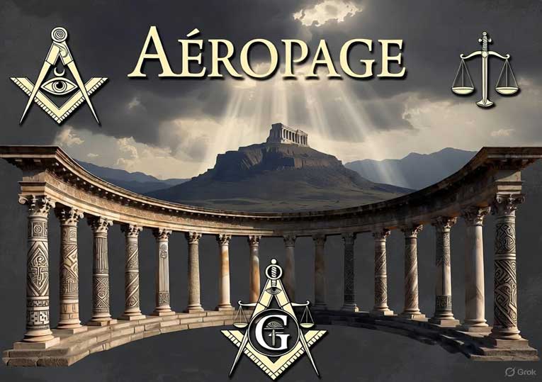Le terme « Aéropage » (ou « Aréopage ») en franc-maçonnerie désigne à la fois un ensemble de degrés supérieurs au sein du Rite Écossais Ancien et Accepté (REAA) et, dans certains contextes, l’atelier ou le conseil maçonnique chargé de les administrer. Issu de l’antique conseil judiciaire athénien situé sur la colline d’Arès (Areopagus en grec), ce mot évoque symboliquement un lieu de jugement suprême, de sagesse et de décision morale, adapté au cadre initiatique maçonnique.